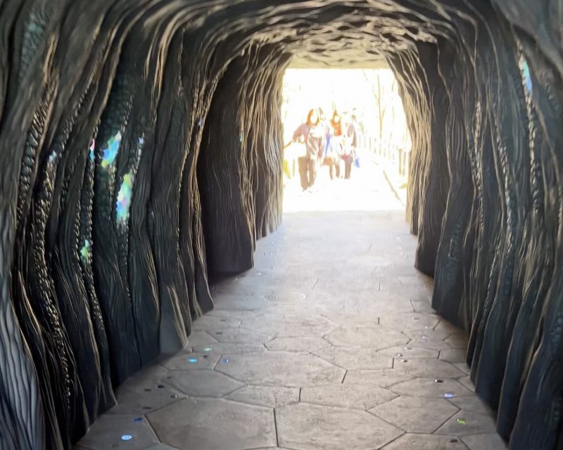 「千と千尋の神隠し」をモチーフにした稲桜門。
