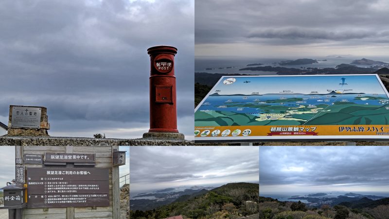 そして、もう1ヵ所、晴れていたならば足湯につかりながら絶景を臨める朝熊山頂展望台まで行きましたが、