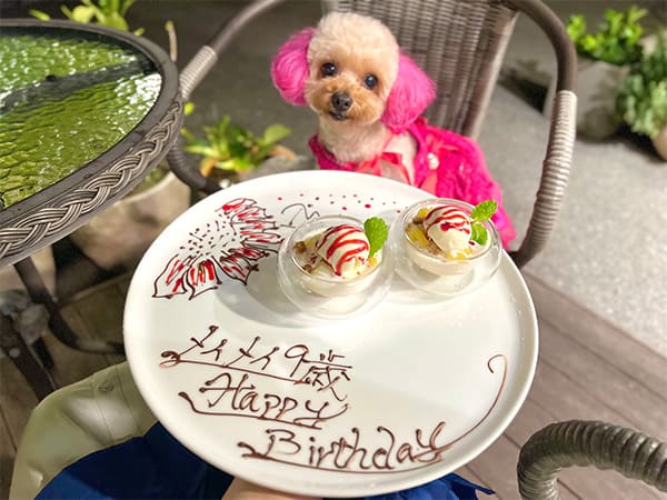 普段はフルコースはテラスでの提供は難しいのですが、お誕生日という事で特別に提供して頂きました!