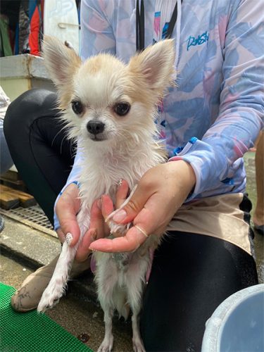 そんなかたの不安を少しでも解消するために、準備物の説明、SUPの基本的な乗り方、飼い主さんやわんこのライフジャケットの着用方法、海上がりのシャンプー方法などのお伝えと実践。