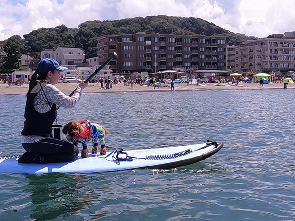 また、ワンちゃんもトイプードルやチワワのような小型犬だけでなく、20kgを超える大型犬にもご参加いただき、飼い主さんと愛犬とのコミュニケーションだけでなく、飼い主さん同士、犬同士でSUPを通じて新たなコミュニティを形成していただきました。