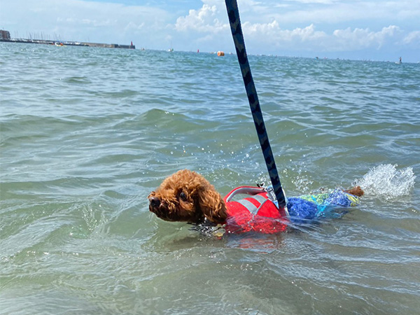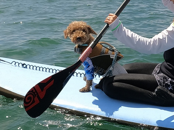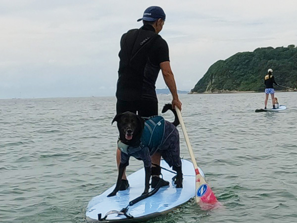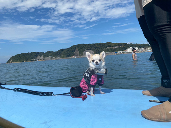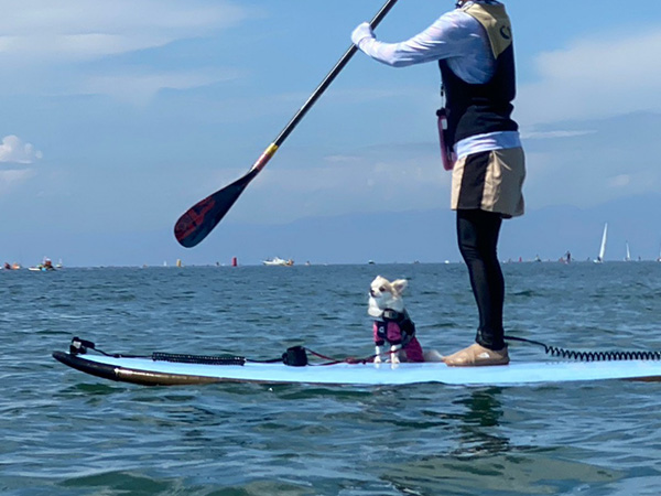 犬用のライフジャケットを使用してみたいや、飼い主さんはSUP経験あるが「他のわんちゃんが乗っているの見れば安心してうちの子もSUPすると思って」と、さまざまなきっかけでご参加くださいました。
