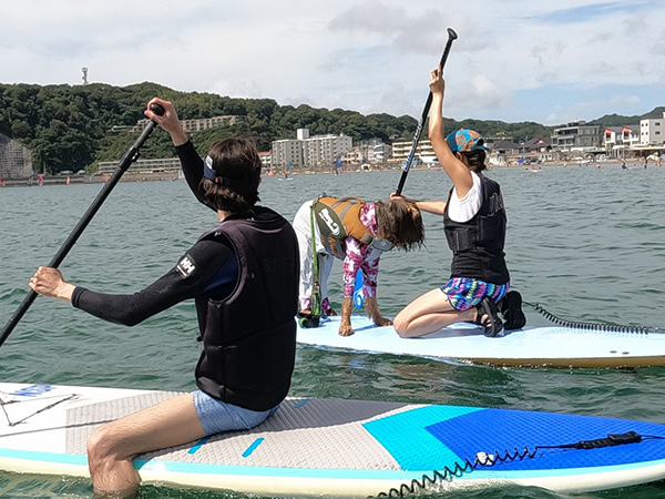 逗子の海は非常に穏やかなのでSUP未経験の方にも体験しやすい環境です。