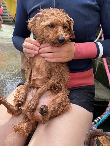 そんなかたの不安を少しでも解消するために、準備物の説明、SUPの基本的な乗り方、飼い主さんやわんこのライフジャケットの着用方法、海上がりのシャンプー方法などのお伝えと実践。