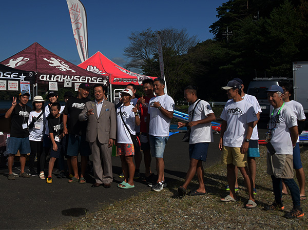 那須町長にお越しいただき、那須ドッグサップレースに参加される方々への応援の挨拶もしていただきました。