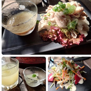 ランチは地場野菜のおばんざい5種、サラダ、ごはん、デザート、ドリンク、メインのお肉料理は選べます。この日は少し暑かったので、冷しゃぶをセレクト。さっぱりして美味しかったです。