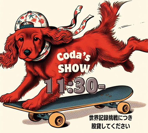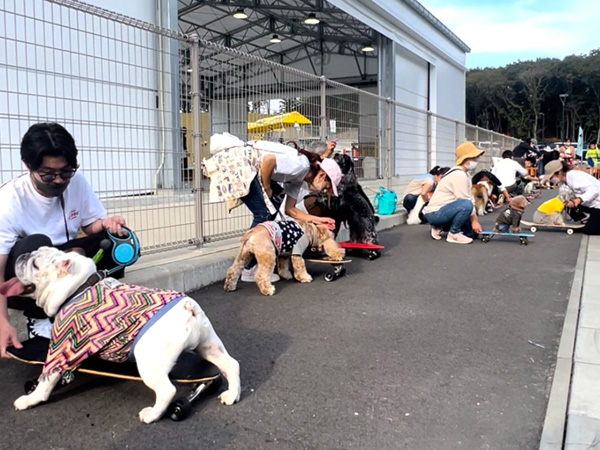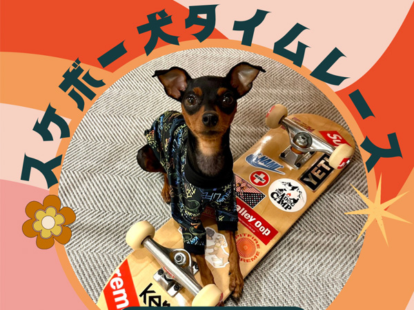スケボー犬コーダとPerritoライダー犬による、パフォーマンス、タイムレース、体験会を行い「ケーナインスケートボーディング」の楽しさを伝えます。