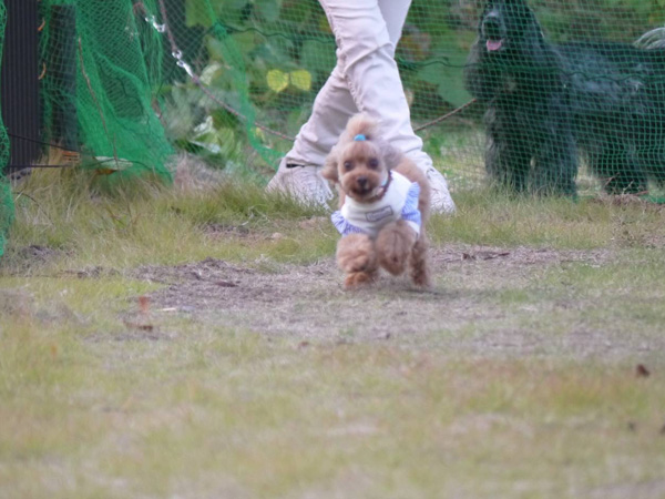 スタートラインに犬を待たせて、ゴールラインから飼い主が「おいで」の合図をし、犬が足元まで来て、首輪あるいはハーネスにリードをつけた時点でゴールとなります。