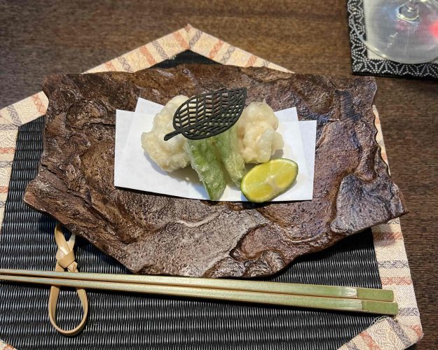 天麩羅の上に乗っている黒い葉っぱ。これなんだと思いますか?