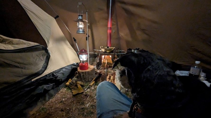 ※テント内での薪ストーブ利用は一酸化炭素中毒などリスクがあるので、十分注意(換気、一酸化炭素中毒センサー利用など)して取り扱いください。