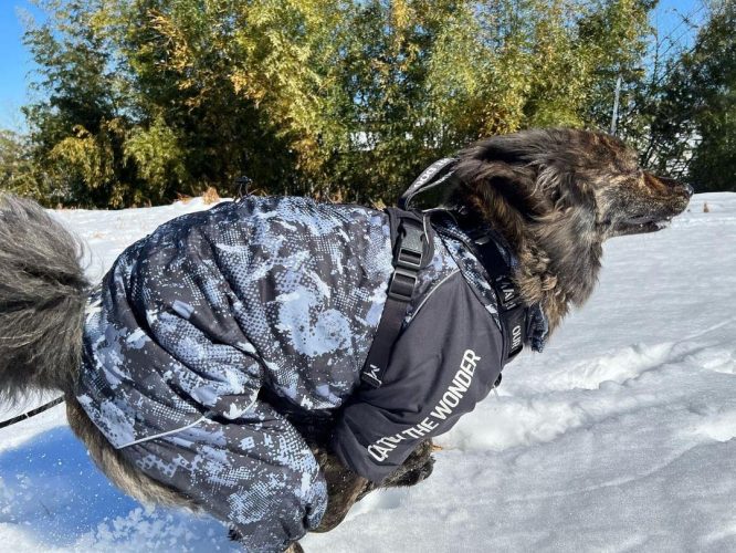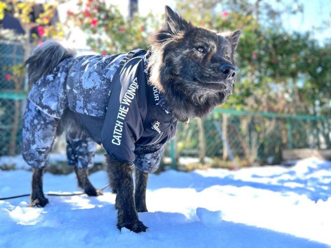 「アウトドア用にと購入したけど、先日の関東の大雪で雪降る中のお散歩にも!