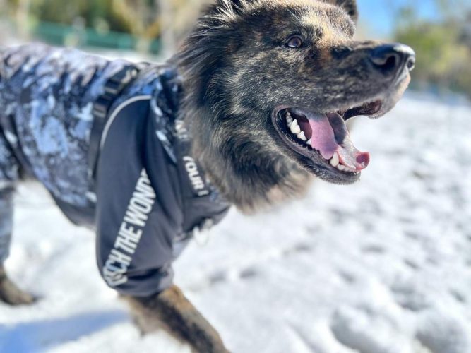 「アウトドア用にと購入したけど、先日の関東の大雪で雪降る中のお散歩にも!