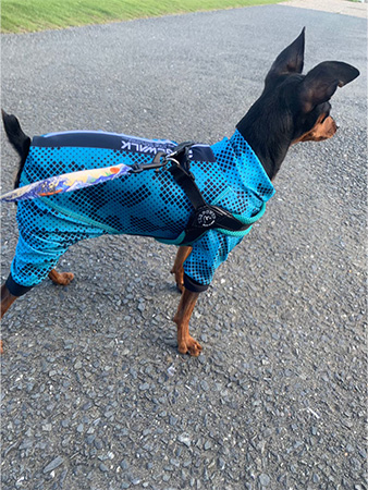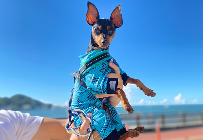基本的に何も着用せずでも問題はありませんが、愛犬にもラッシュガード、ロンパースを着用することが好ましいです。
