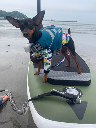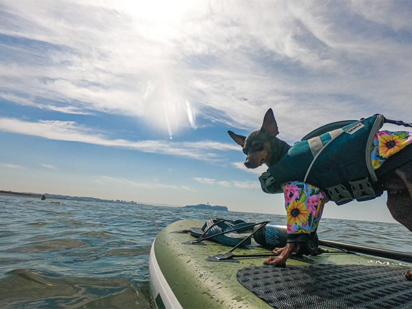 サイズ・浮力を確認したライフジャケットを着用し安心して愛犬とSUPを楽しみましょう。