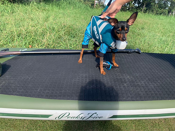 サイズ・浮力を確認したライフジャケットを着用し安心して愛犬とSUPを楽しみましょう。