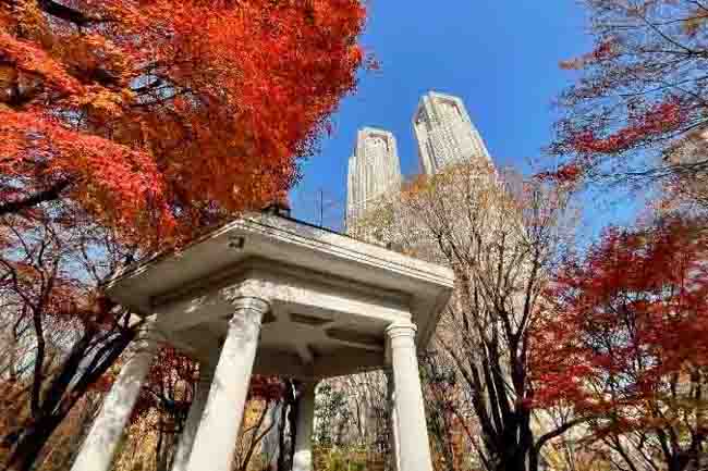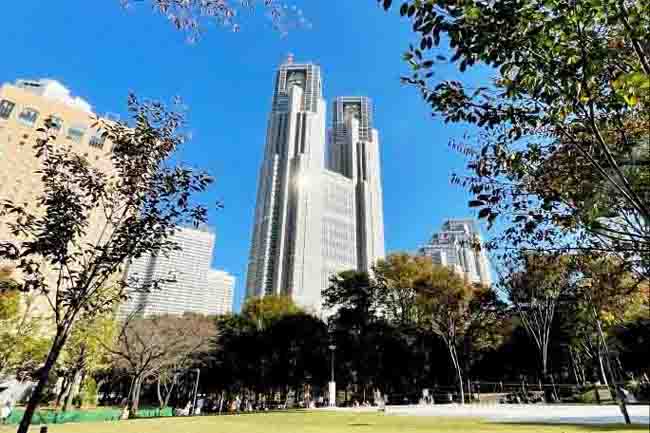 高層ビルが立ち並ぶ中にある公園にあり、公園のどこからも東京都の庁舎「都庁」を見ることが出来る、とても不思議な空間です。