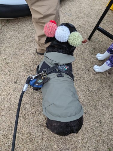 という声かけで、沢山の犬に試着していただきました。