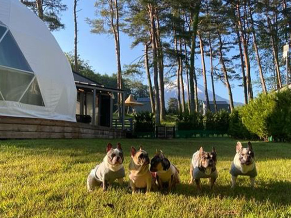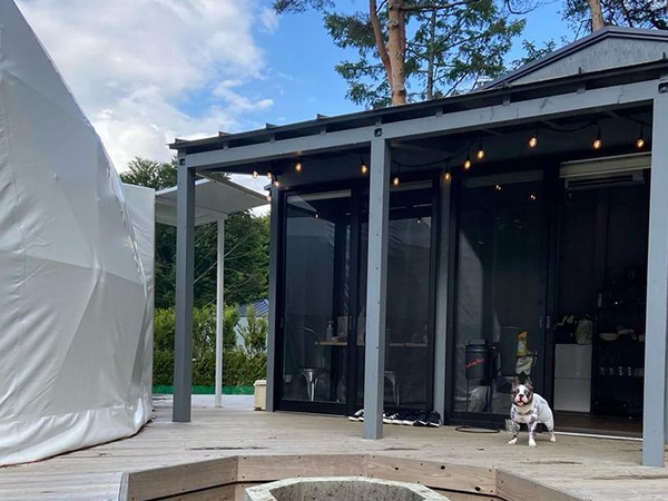 富士山を眺める立地、頭数制限なし、全天候型グランピング、プライベートドッグラン付きです。