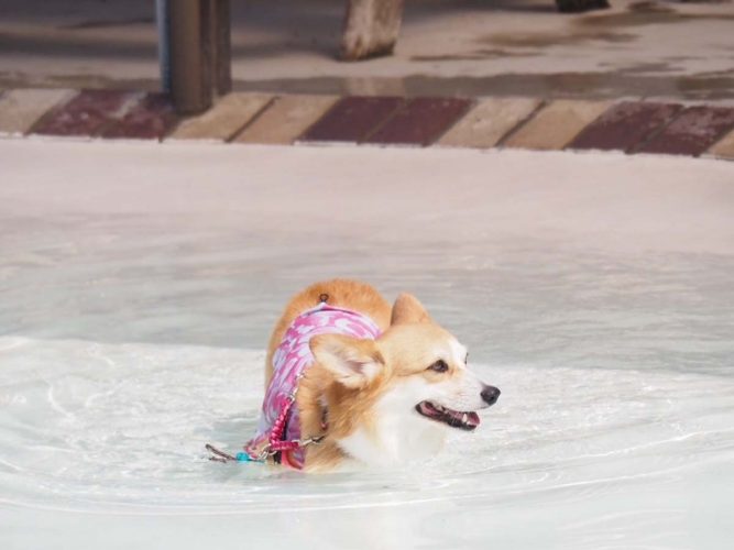大型犬を自由に走らせたり泳がすことができる施設なのでわんこ飼いにはとても人気があります。中型犬のコーギーは基本大型犬エリアのみ入場可になります。