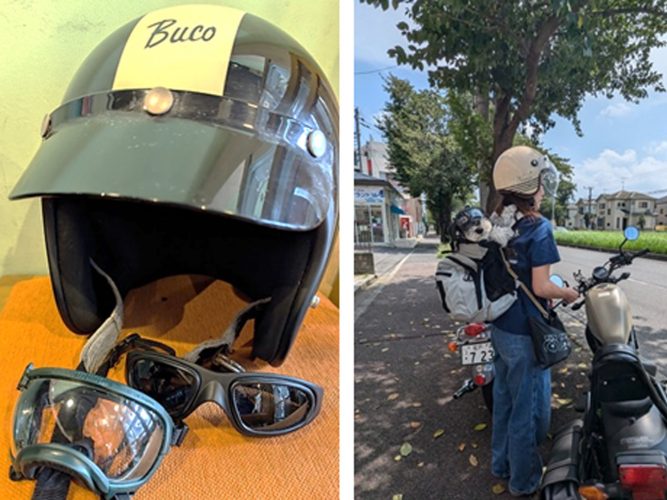 最近ではワンコ用のツーリングアイテム(ヘルメット、ゴーグルなど)もあるのでワイルドにお出掛けするの良いではないでしょうか?