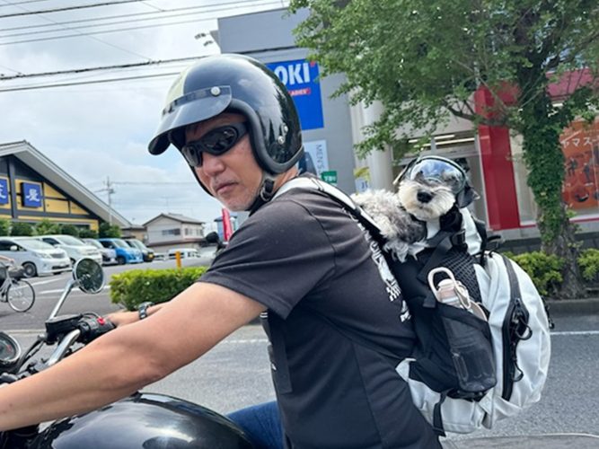 久々にバイクに跨るママさんも同行するため、近所のドッグカフェまでのプチツーリングです。