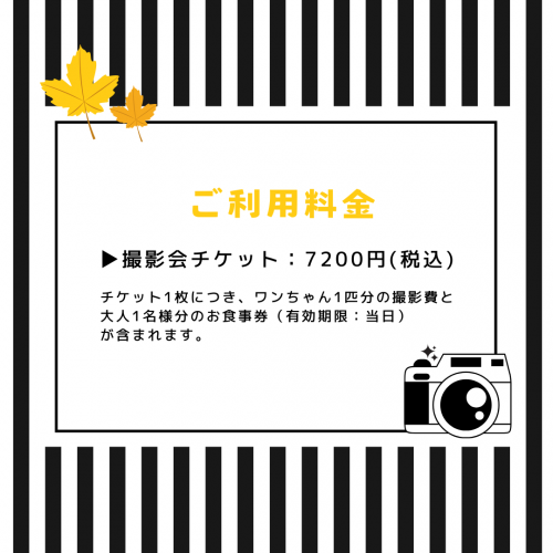 費用の中には、1匹分の撮影代に、1名様分の食事が入っております。