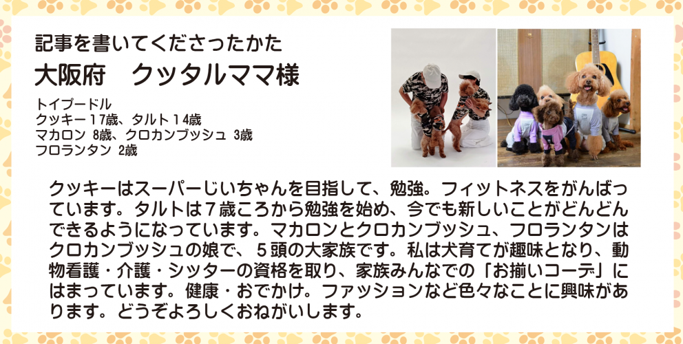 ご無沙汰しております。大阪のトイプー大家族のクッタルママです。