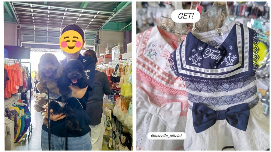 「株式会社ハヤブサ」様のブースでは、オシャレな首輪を女子に、結婚式のモーニングの様なスーツを男子に、とってもお買い得に購入しました。