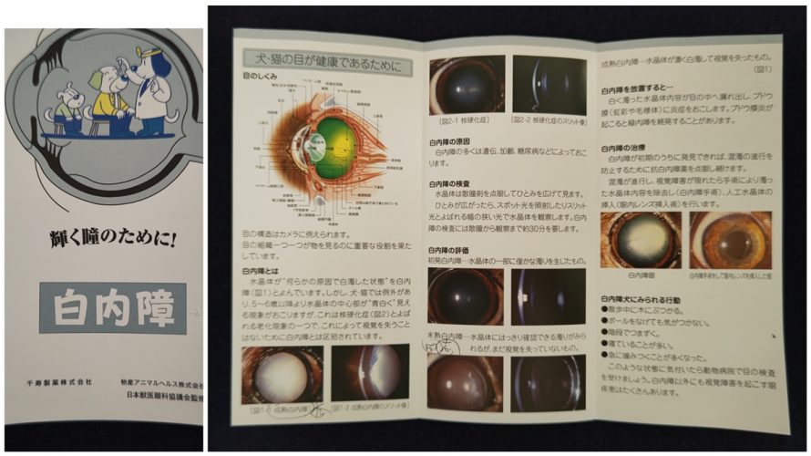 セミナー後に獣医師のチェックを受けられるとのことで、8、9歳頃から白内障の初期だと言われているタルト(14歳)を診ていただくと、「白内障が進んでいる左目はブドウ膜炎を発症していて、眼圧も高いから、放っておくと緑内障になるから、早いめに病院に行くように」と言われました。
