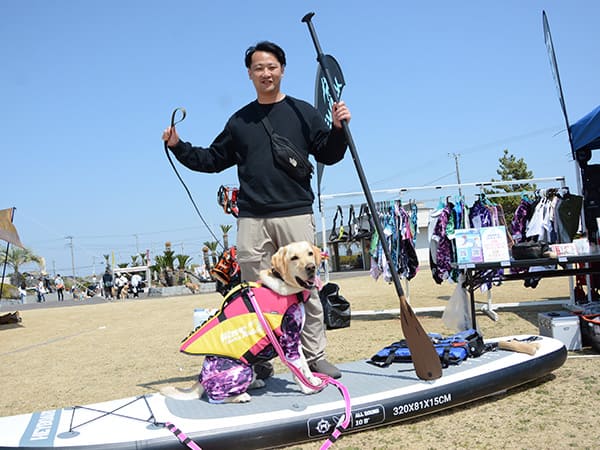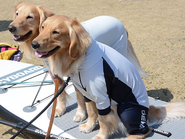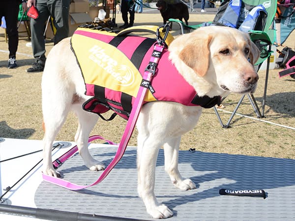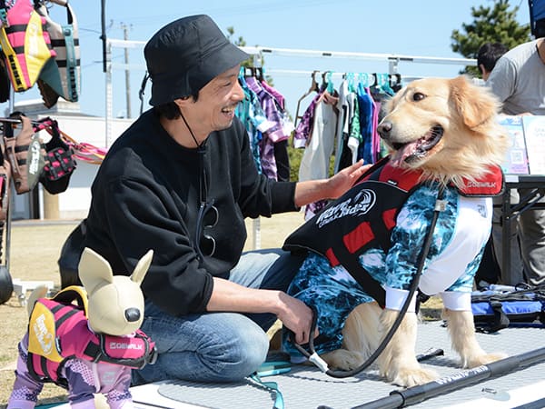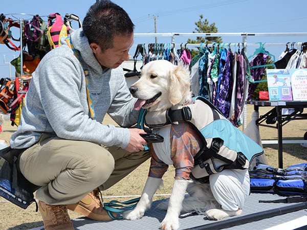 GEWALKの新作を展示していたのですが、たくさんのわんちゃんにライフジャケットやロンパース、タンクトップを試着いただきました。