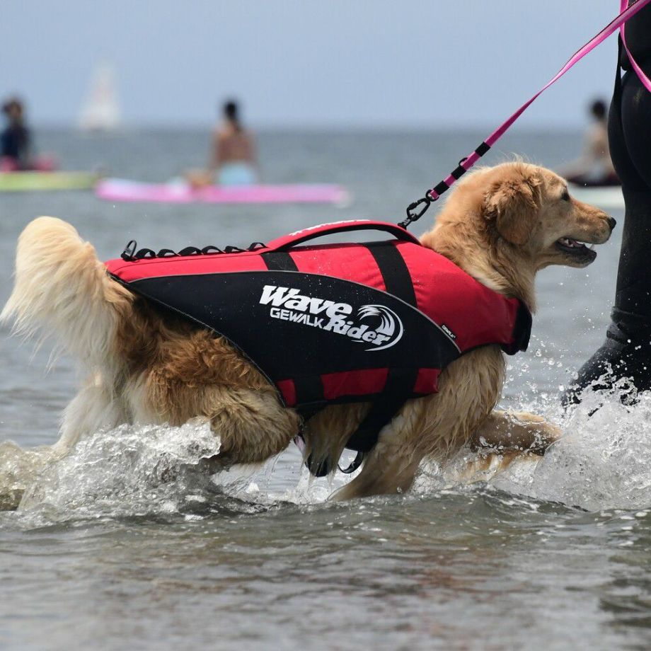 抜群の浮力と持ち上げやすいハンドルで、初めて水に入るわんちゃんにぴったり。