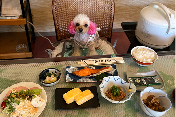 わんちゃん同伴プランにお食事はついていませんが、別途料金支払えば朝食を用意してくれます。朝からこのボリューム!