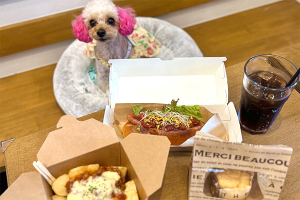 訪れた時は、オープンしてすぐだった事もあり、ドッグランはまだ工事中でランチもまだやってなかったので、ホットドッグとポテトを食べたよ。