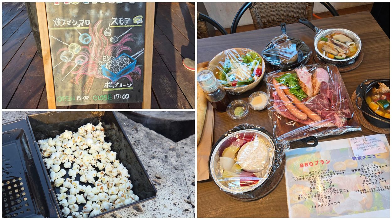 嬉しいことに、わんこにはウェルカムオヤツが置かれてあり、人は焚き火で焼きマシュマロやポップコーンを楽しめました。