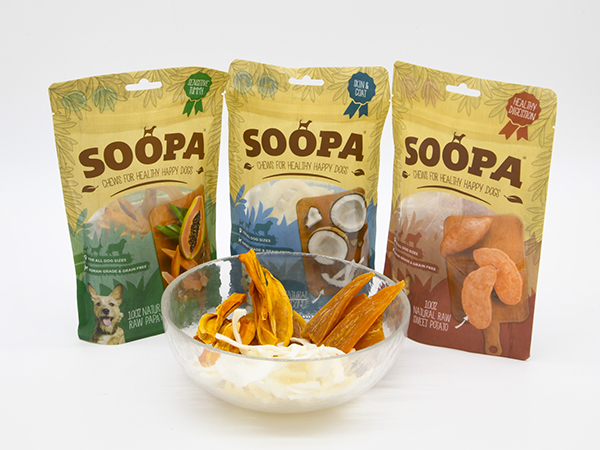 SOOPAは、わんちゃんのライフステージに合わせて選べるやさしいナチュラルおやつです。