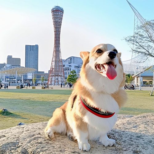 神戸ポートタワーと同じ赤いハーネスがかわいいでしよ?
