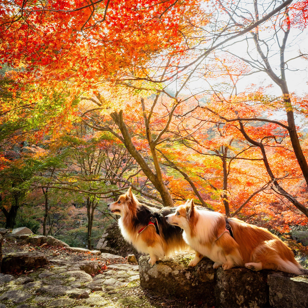 桜紅葉の絨毯がとても綺麗。たくさん歩いて、たくさんお写真撮って、オヤツも食べて、楽しいお散歩タイムでした。