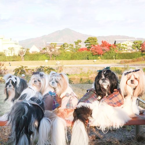 樹々が秋色に染まった賀茂川で、大好きなgemelliさんのお洋服とカラー&リーシュでみんなでお写真撮りました!!