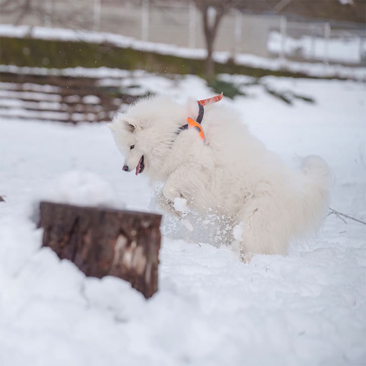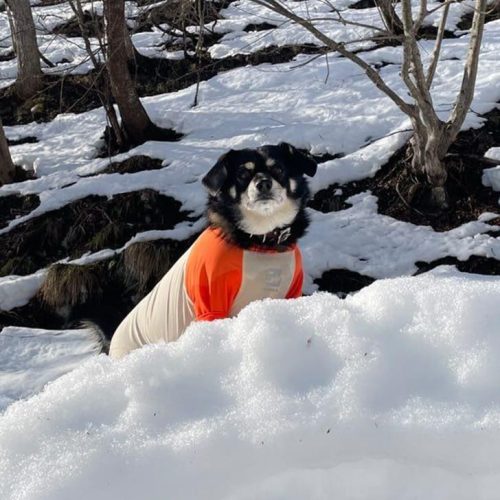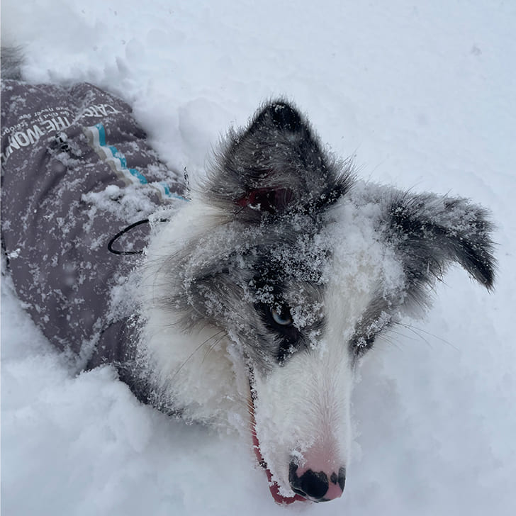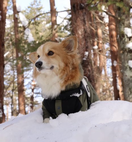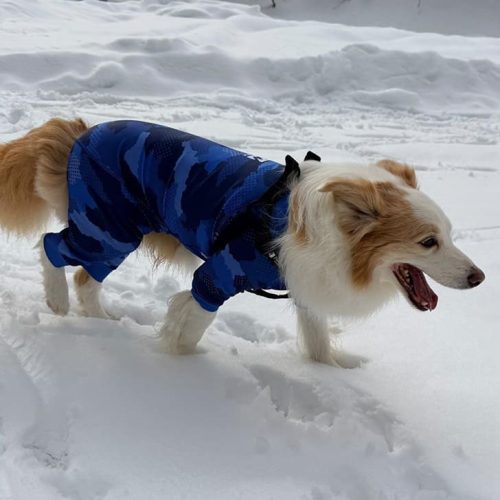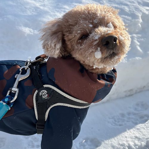 雪に顔突っ込んだのバレバレ笑 冬は雪まみれになるのでトレポンティのリベルタタイプのハーネスにして暖かい季節になるとアジャスタブルタイプに変更して愛用してます。