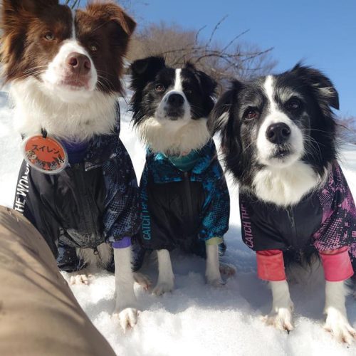 お揃いウェアで仲良く記念撮影!3頭の熱い視線の先は・・・雪?それともおやつ??