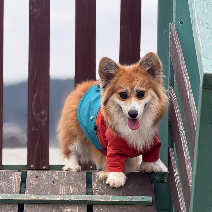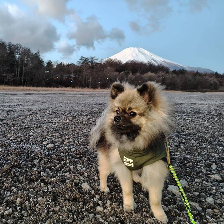 冬のカフェ併設のドッグランはオシャレなMWTのパーカー。アクティブな雪山はgewalkと使い分けしてます。
