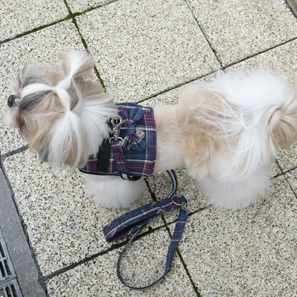 「再帰反射」を実現した光るリーシュ! クラシカルチェックリーシュ【S】